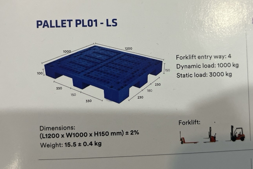 Pallet PL01 - LS là Pallet liền khối với 9 chân trụ dễ sử dụng. Phù hợp cả xe nâng máy và nâng tay. Độ bền cao, chống va đập nếu xảy ra trường hợp pallet bị rơi trong quá trình bốc dỡ sẽ giúp bảo vệ cho hàng hoá tránh xảy ra hư tổn nghiêm trọng. Sản phẩm làm từ chất liệu nhựa chính phẩm có đặc tính bền, chắc chịu được được thời tiết khắc nghiệt: mưa, bão, tuyết, nắng gắt,...